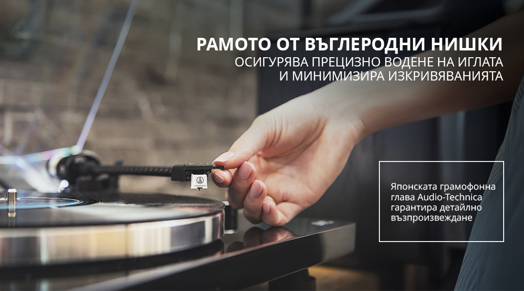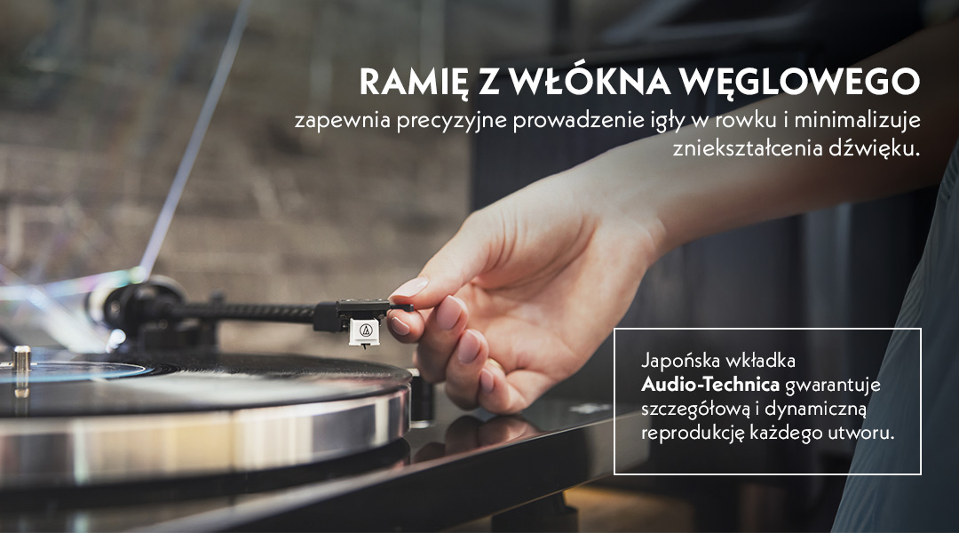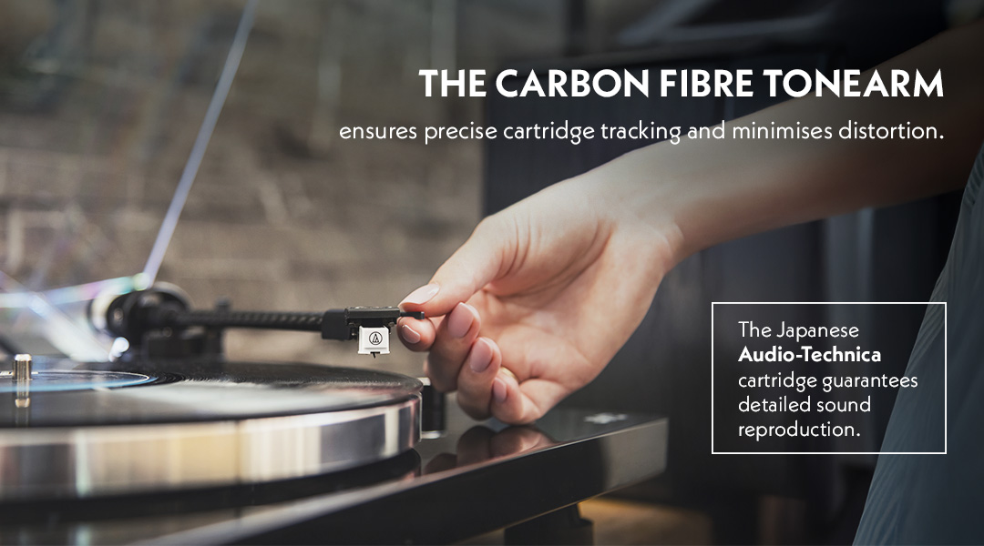 Ramienko z karbónových vlákien je nielen elegantné, ale predovšetkým pevné a ľahké – to znamená presné vedenie prenosky a minimálne skreslenie. Japonská prenoska Audio-Technica AT3600L, ktorou je gramofón vybavený, je zárukou detailného a dynamického prenosu zvuku. O stabilitu otáčok sa stará remienkový pohon, ktorý eliminuje vibrácie a šum.