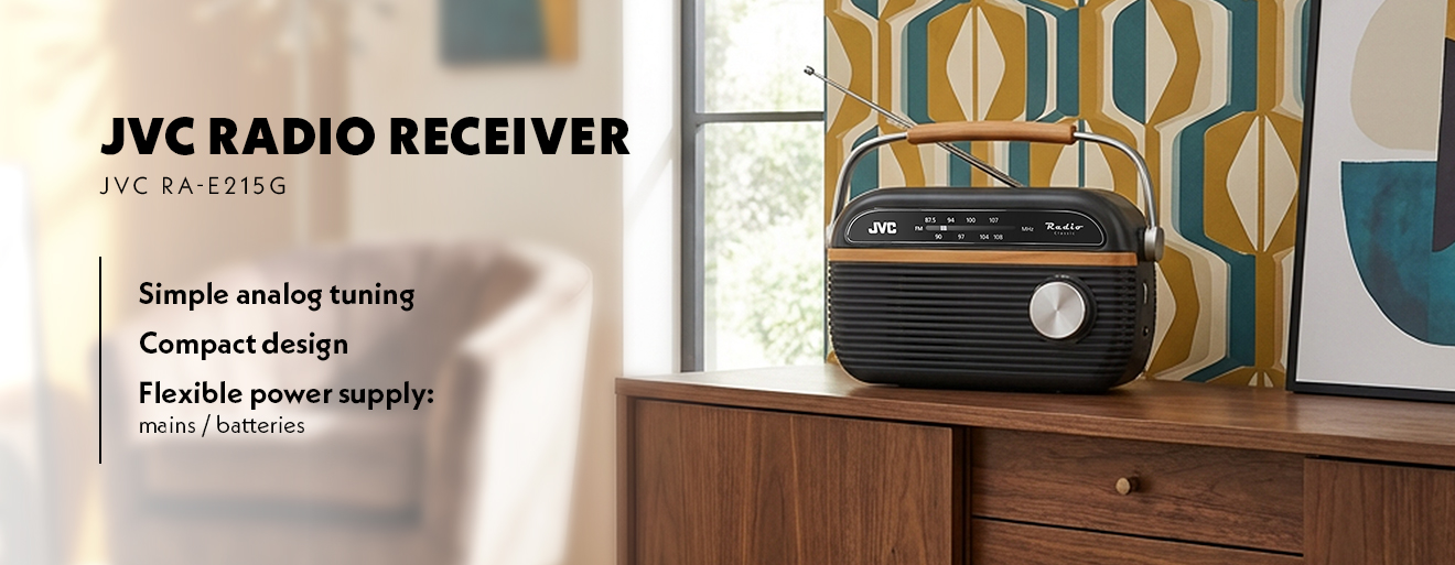 Hlavní přednosti radiopřijímače JVC RA-E215G