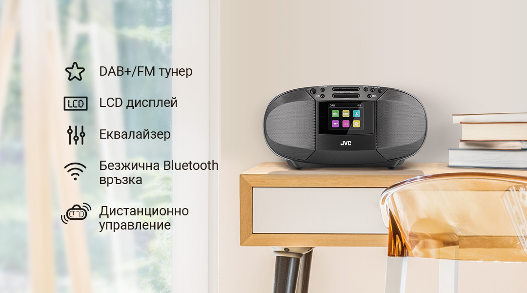 Rádiomagnetofón DAB+/CD JVC RD-E664B-DAB, čierny