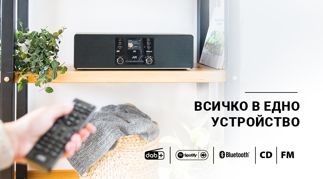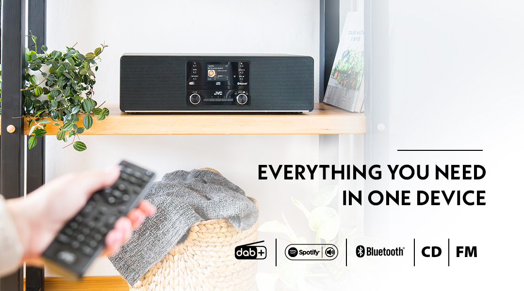 Máte svoje obľúbené playlisty, bez ktorých si neviete predstaviť ani deň? Tak počúvajte! Audio systém podporuje Spotify Connect, čo znamená, že si môžete púšťať obsah z aplikácie práve cez toto JVC zariadenie. Jednoducho, pohodlne a bez nutnosti ďalších pripojení. Stačí v aplikácii Spotify zvoliť JVC RD-E984B ako výstupné zariadenie a audio začne hrať z reproduktorov systému. Vy medzi tým môžete telefón ďalej používať – napr. na prechádzanie playlistov, správ alebo sociálnych sietí.