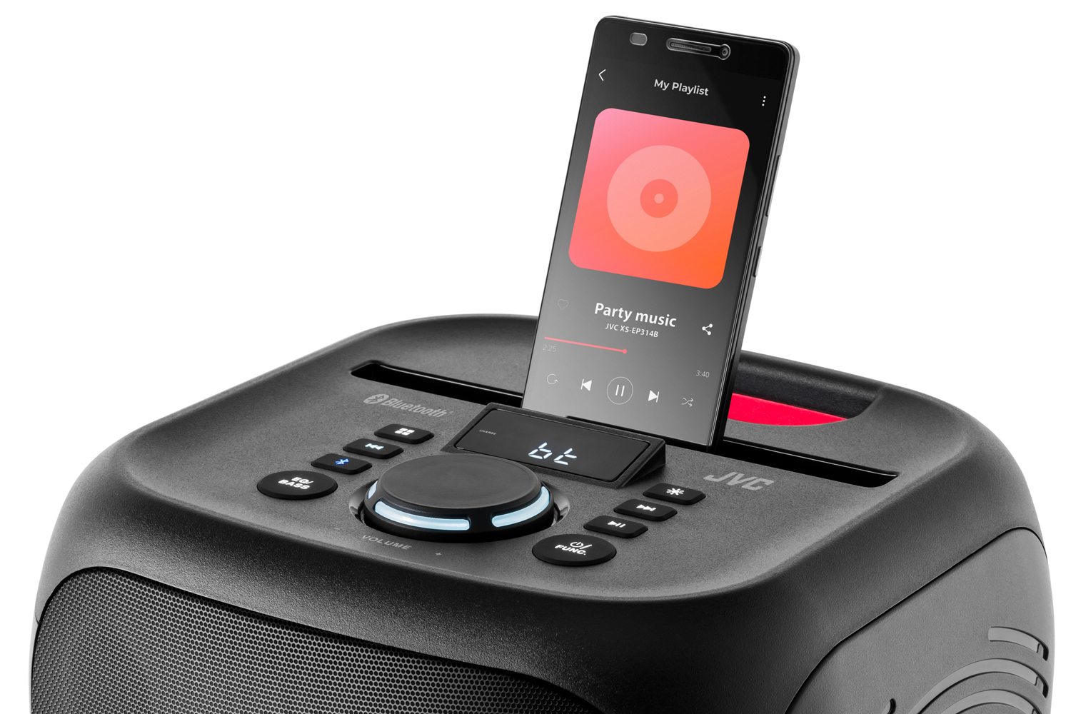 Nový party reproduktor JVC XS-EP314B je vybaven Bluetooth ve verzi 5.3. Díky této technologii můžete snadno a pohodlně přehrávat své oblíbené skladby z mobilního telefonu, tabletu nebo jiných zařízení.