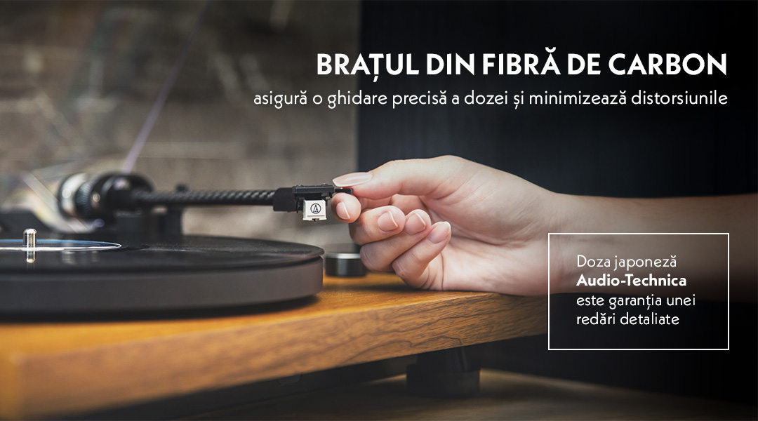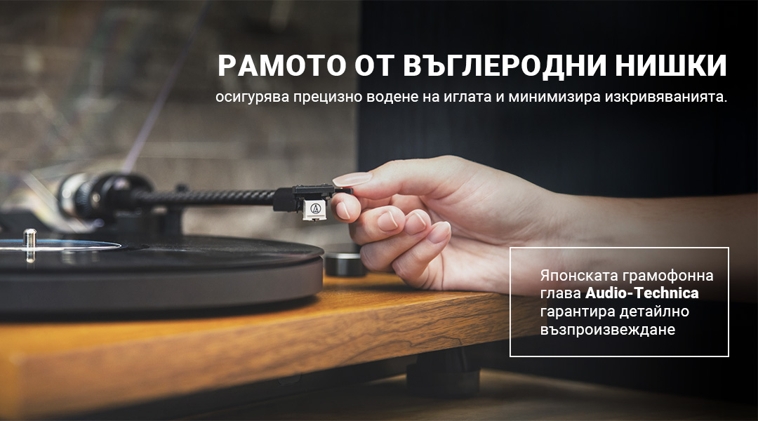 Ramienko z karbónových vlákien je nielen elegantné, ale predovšetkým pevné a ľahké – to znamená presné vedenie prenosky a minimálne skreslenie. Japonská prenoska Audio-Technica AT3600L, ktorou je gramofón vybavený, je zárukou detailného a dynamického prenosu zvuku. O stabilitu otáčok sa stará remienkový pohon, ktorý eliminuje vibrácie a šum.