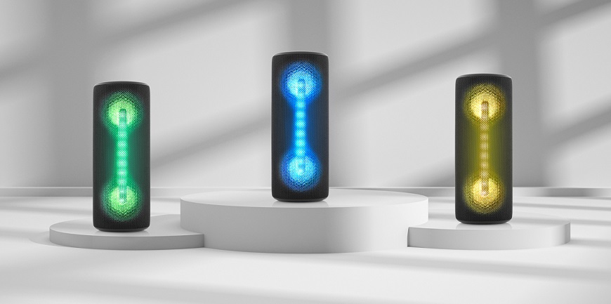 Ďalšou príjemnou vlastnosťou reproduktora je dotykové ovládanie na boku prístroja a tiež svetelné LED efekty.
